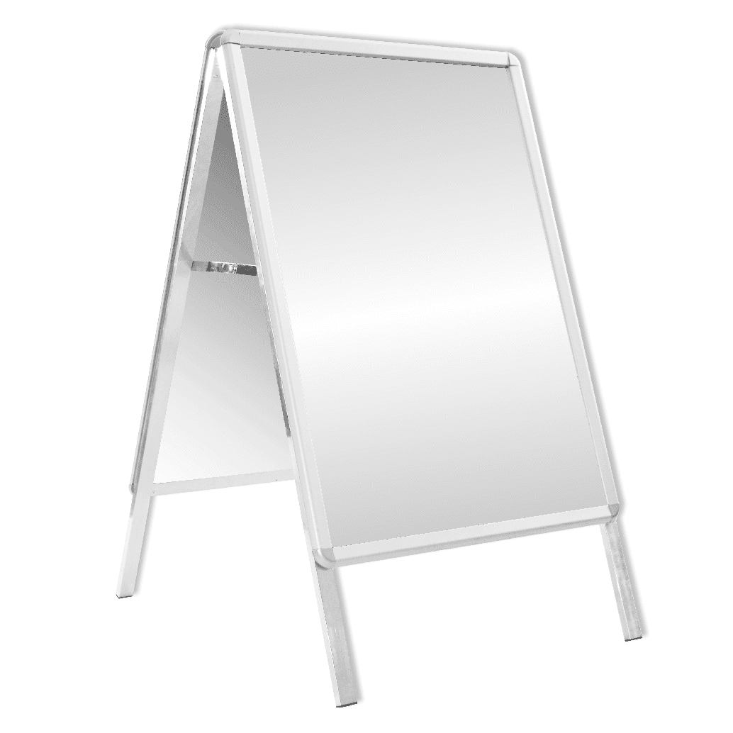 Double sided poster display with aluminium snapframes and anti-glare poster cover. Back panel is suitable for vinyl print enabling more permanent messaging between poster promotions