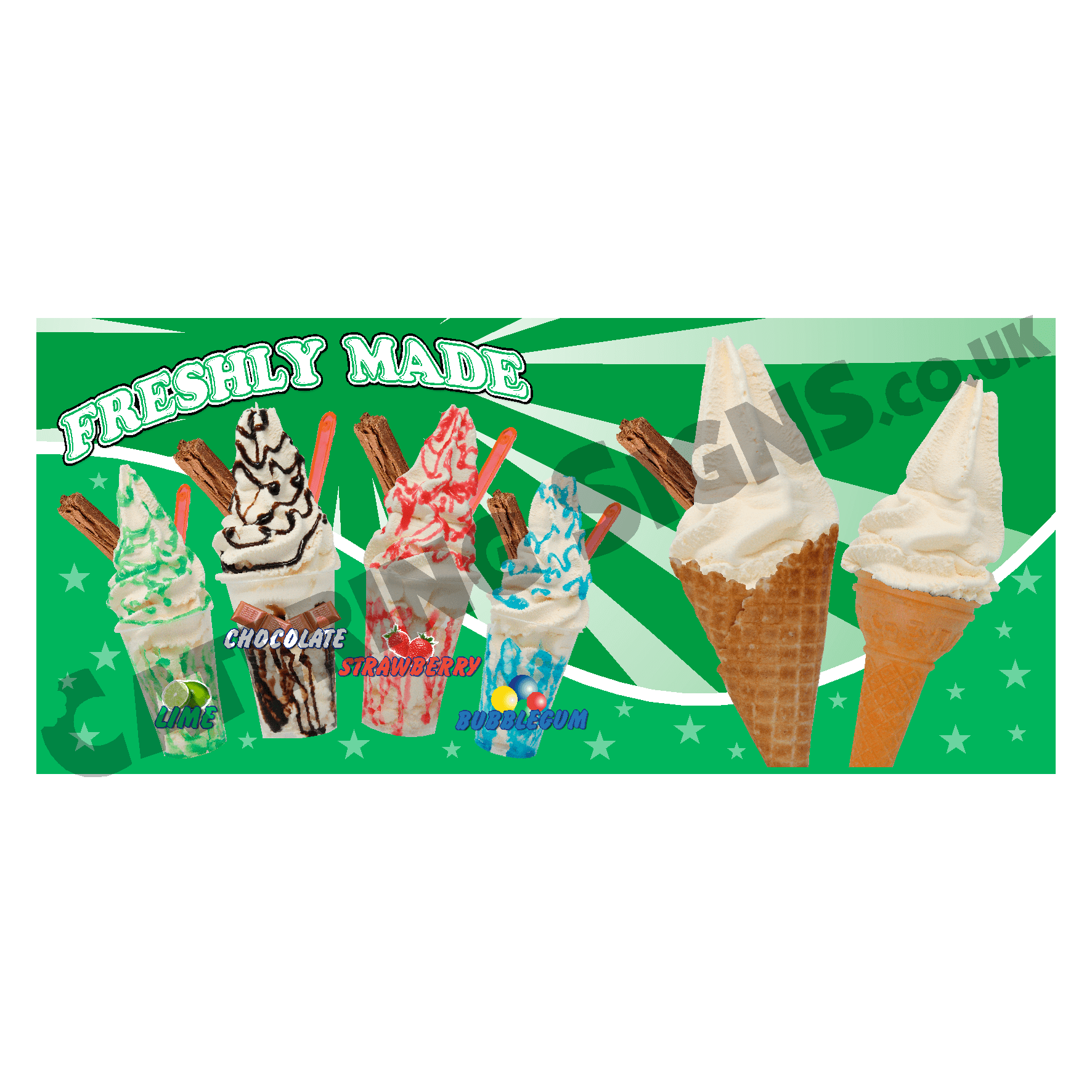 Ice Cream van serving counter mat with KBG & Cone graphic.