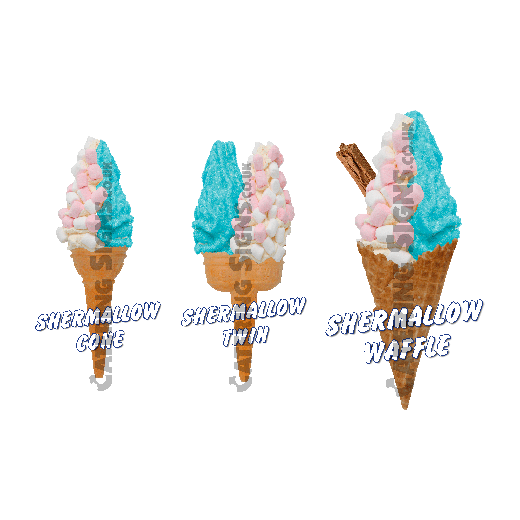 Self adhesive vinyl stickers with a single cone, twin cone and waffle cone in each set. Single and twin cones are each approximately 16.5cm high without a Flake and the waffle cones are approximately 20cm high with a Flake.